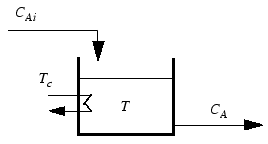 Следующие дифференциальные уравнения представляют линеаризованную модель непрерывного реактора с мешалкой (CSTR), включающего экзотермическую реакцию: