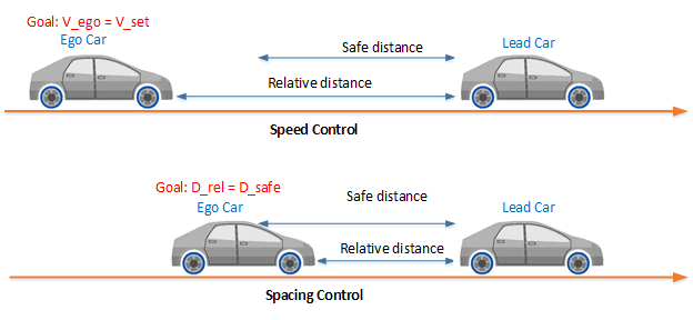 По умолчанию контроллер прогнозирования модели вычисляет безопасное следующее ограничение расстояния: то есть минимальное относительное расстояние между ведущим и эго транспортным средством, как: