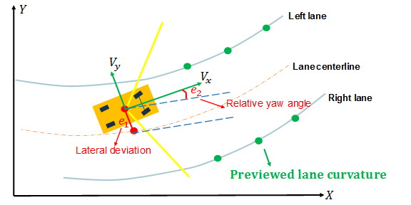 Контроллер создает свою внутреннюю прогностическую модель путем увеличения динамической модели эго-транспортного средства. Увеличенная модель включает кривизну дороги в качестве измеренного входного сигнала возмущения.