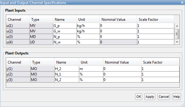 В диалоговом окне «Спецификации канала ввода и вывода» в столбце «Единица» определите единицы измерения для каждого канала. Так как все сигналы нормализуются с нулевыми номинальными значениями установившегося состояния, оставьте значения номинального значения и масштабного коэффициента для каждого канала на уровне значений по умолчанию.