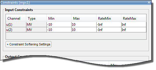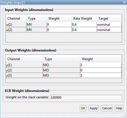 В выпадающих списках Signal для других выходных опорных сигналов выберите Constant для удержания значений на соответствующих номинальных значениях. Контроллер игнорирует уставку для второго выхода, так как соответствующий вес настройки равен нулю.