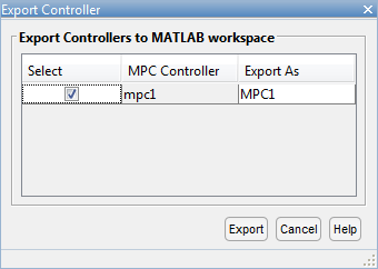 На вкладке MPC Designer в разделе Result щелкните Export Controller.