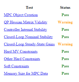 Предупреждение Closed-Loop Steady-State Gains указывает, что установка имеет больше контролируемых выходов, чем управляемые переменные. Этот дисбаланс ввода/вывода означает, что контроллер не может устранить ошибку установившегося состояния для всех выходов одновременно. Для достижения контрольной цели отслеживания уставок H2 и N2 предварительно устанавливается нулевой выходной вес N1. Эта настройка вызывает предупреждение о достоверности матрицы QP Hessian, которое указывает, что один из весов вывода равен нулю.