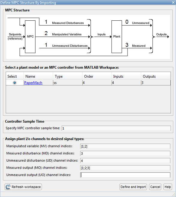 В диалоговом окне «Определение структуры MPC путем импорта» выберите PaperMach модель установки и назначить каналы ввода/вывода установки следующим типам сигналов: