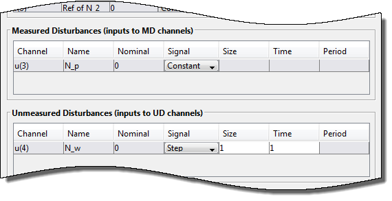 В таблице Несмеренные возмущения в раскрывающемся списке Сигнал выберите Step для моделирования внезапного, устойчивого неизмеренного входного нарушения.