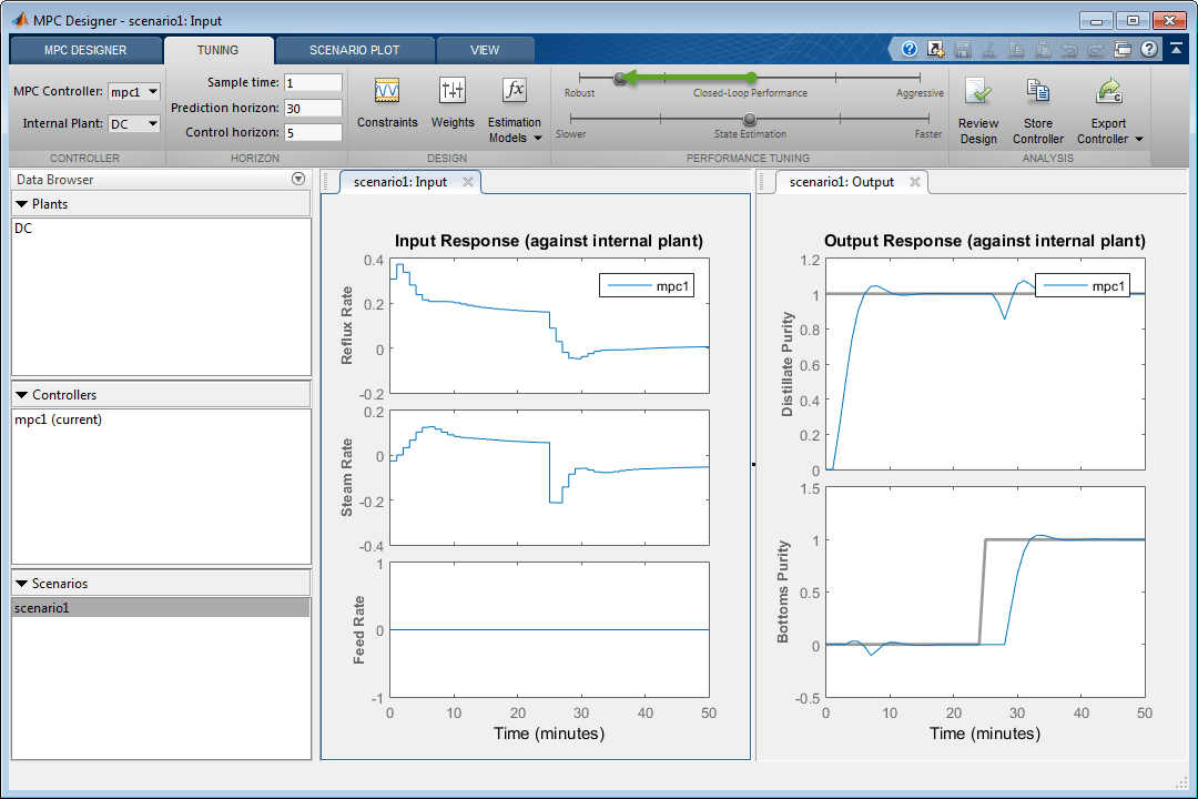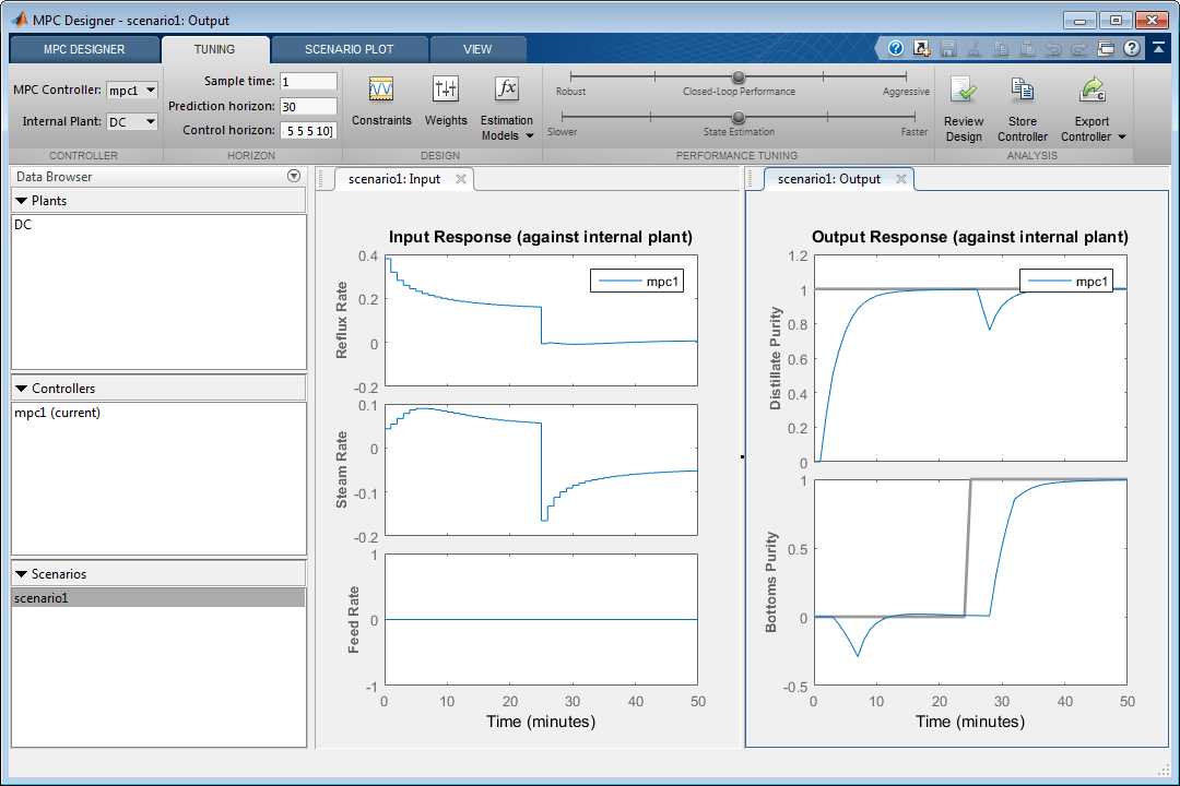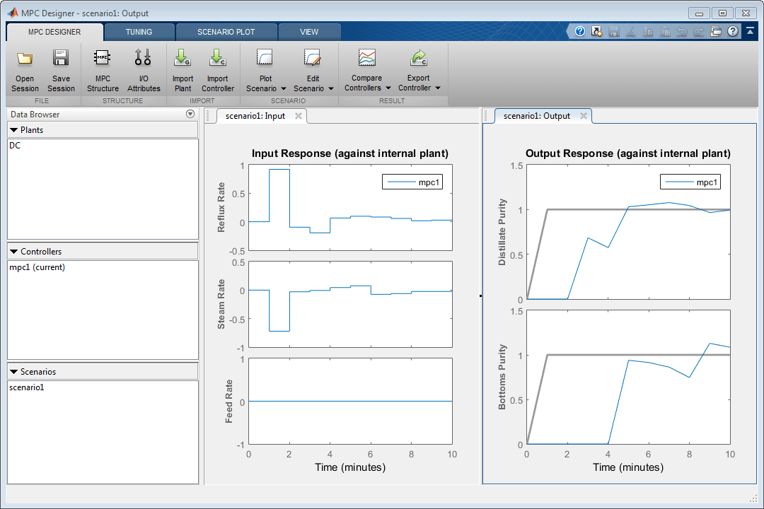 DC.OutputName = {'Distillate Purity','Bottoms Purity'};Кроме того, можно указать имена сигналов в MPC Designer на вкладке MPC Designer, щелкнув Атрибуты ввода-вывода.