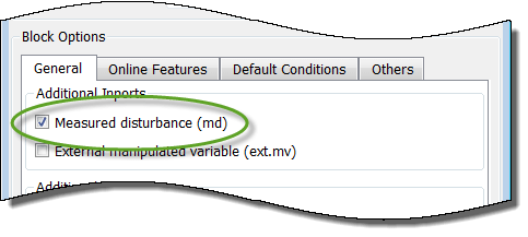 В диалоговом окне «Параметры блока» на вкладке «Общие» выберите «Измеренное возмущение (md)».
