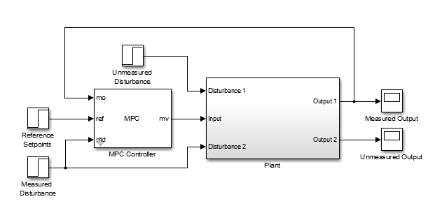 Если у вас нет модели Simulink завода, можно создать модель, использующую контроллер MPC для управления внутренней моделью завода. Дополнительные сведения см. в разделе Создание модели Simulink из MPC Designer.