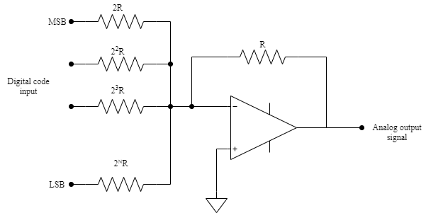 R-2R DAC является одним из наиболее распространенных типов двоично-взвешенных DAC. Состоит из параллельного бинарно-взвешенного блока резисторов. Каждый цифровой уровень преобразуется в эквивалентный аналоговый сигнал блоком резисторов.