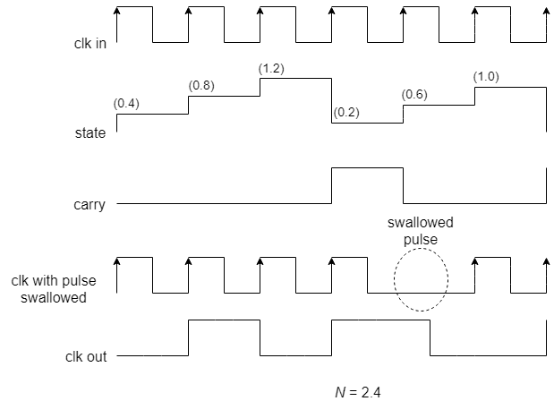 Делитель тактового сигнала, делящий частоту входного сигнала на дробное число