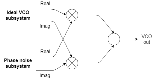 Если функция «Добавить ухудшение фазового шума» отключена, то подсистема Ideal VCO становится активной. Это дает следующие два ортогональных выходных сигнала без какого-либо ухудшения фазового шума и, следовательно, название Ideal VCO:
