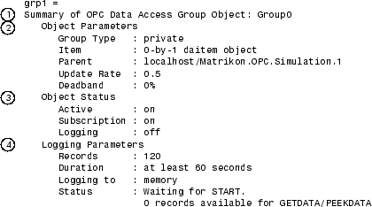 Программное обеспечение OPC Toolbox поддерживает использование векторов объектов. Вектор объекта - это единственная переменная в рабочей области MATLAB, содержащая ссылку на несколько объектов. Например, все группы, добавленные в opcda объекты клиента хранятся в клиенте Group собственность. Group содержит свойство dagroup вектор объекта, представляющий все группы в этом клиенте. Аналогично, a dagroup объект имеет Item свойство, содержащее ссылку на каждое daitem объект, созданный в группе.