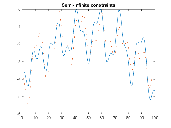 x0 = [0.5; 0.2; 0.3]; % Starting guess [x,fval] = fseminf(@myfun,x0,2,@mycon);