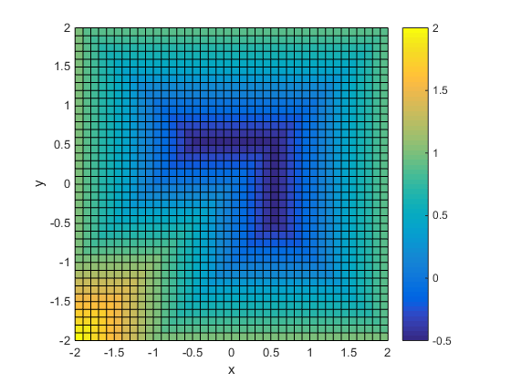 opts = optimoptions(@fmincon,'Algorithm','interior-point','Display','off'); x0 = [-.5,.6]; % an arbitrary guess [xsol,fval,eflag] = fmincon(fun,x0,[],[],[],[],[],[],@rectconstrfcn,opts)