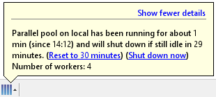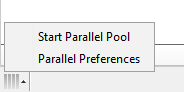 Для запуска параллельного пула вручную можно использовать индикатор состояния параллели в левом нижнем углу рабочего стола MATLAB.