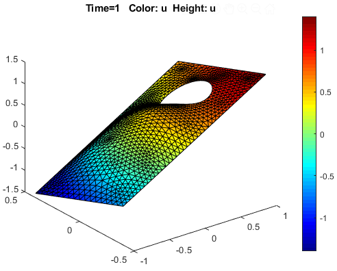 Решите уравнение, выбрав команду Решить (Solve) > Решить PDE (Solve PDE) или нажав кнопку = на панели инструментов.