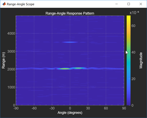 создает объект области диапазона-угла System для отображения отклика диапазона-угла.scope = phased.RangeAngleScope