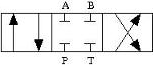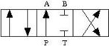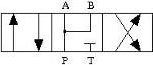 | Отверстия P-A, P-B, A-T и B-T закрыты в нейтральном положении. Р-Т открывается в нейтральном положении и закрывается при смещении золотника.