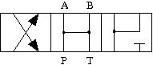 | Отверстие Р-А открыто в нейтральном положении. Отверстия P-B, A-T и B-T перекрываются.