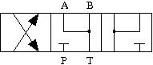 | Отверстия P-A и P-B открыты. Отверстия A-T и B-T перекрываются.