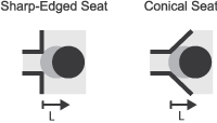 Площадь открытия клапана зависит от геометрии седла клапана, которая может быть Sharp-edged или Conical. Область утечки определяется для небольших контактных зазоров между шариком и седлом в полностью закрытом положении. Этот параметр также поддерживает непрерывность в потоке для производительности решателя.
