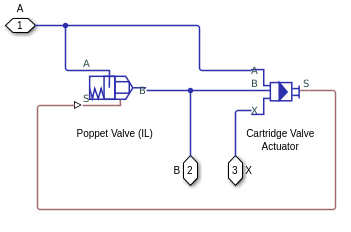Специальная вставка патронного клапана состоит из двух блоков библиотеки изотермической жидкости: