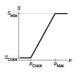 где нижний индекс Max обозначает максимальное давление (полученное как манометрическое). Значение pMax, G получается из параметра Максимальное давление открытия (манометр) блока; значение ΔpMax получается из параметра Максимальный перепад давления открытия. Регулирование, растрескивание и максимальное давление дают линейную форму площади открытия клапана: