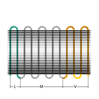 NR - количество рядов труб вдоль направления потока. Это число двухфазных рядов труб для текучей среды вдоль направления потока влажного воздуха.