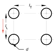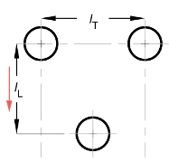 lT - поперечный шаг трубы (перпендикулярно направлению потока), показанный на рисунке ниже. Поперечный шаг представляет собой расстояние между центрами двухфазной жидкостной трубки в одном ряду.