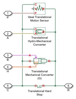 Блок представляет собой составной компонент, созданный из блоков Simscape™ Foundation. Для получения дополнительной информации о работе блока привода двойного действия (H-G) см. справочные страницы составных блоков: