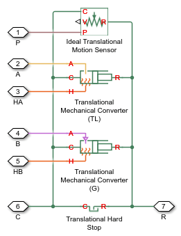 Блок представляет собой составной компонент, созданный из блоков Simscape™ Foundation. Для получения дополнительной информации о работе блока привода двойного действия (TL-G) см. справочные страницы составных блоков: