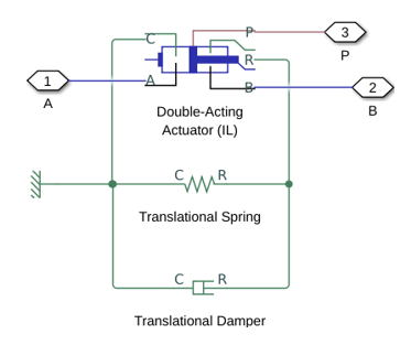 Чтобы избежать механических повреждений исполнительного механизма, когда он полностью выдвинут или полностью убран, исполнительный механизм обычно демонстрирует нелинейное поведение, когда поршень приближается к этим пределам. Блок привода сервоклапана двойного действия (IL) моделирует это поведение с помощью выбора из трех моделей жесткой остановки, которые моделируют соответствие материала с помощью системы демпфера пружины. Модели жесткого останова: