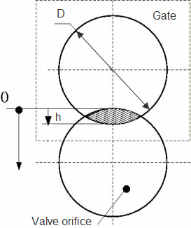 Блок Gate Valve моделирует клапан, состоящий из круглого отверстия в корпусе клапана и плоского затвора, который перемещается перпендикулярно оси отверстия. Отверстие в затворе имеет тот же диаметр, что и отверстие в корпусе. По мере перемещения затвора он открывает или закрывает канал клапана (показанный как затененная область на следующей иллюстрации).