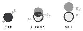 Нормализованное положение h охватывает три области. При достаточно малом смещении насыщается при 0 и клапан полностью закрыт. При достаточно большом смещении насыщается при 1 и клапан полностью открыт. В промежутках он линейно изменяется между своими границами насыщения, давая клапан, который частично открыт.