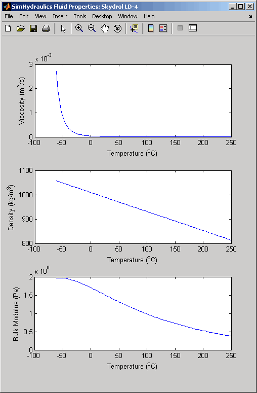 Информацию о жидкостях и их свойствах можно получить в командной строке MATLAB ®. В следующем примере первая команда выводит список доступных жидкостей, а вторая команда отображает свойства выбранной жидкости из списка, в данном случае Skydrol LD-4 .