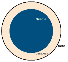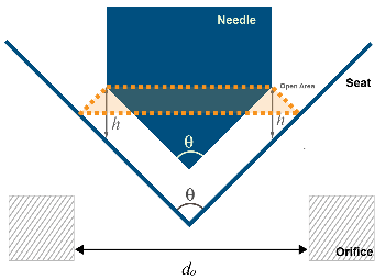 h - вертикальное расстояние между наружным краем иглы и седлом, как показано на схеме выше.