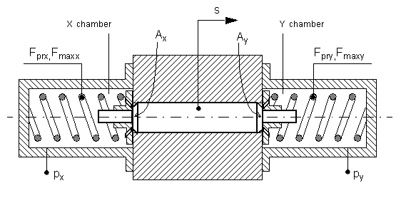 Fmax, X и Fmax, Y - максимальные силы пружины, действующие против смещения поршня в окнах X и Y соответственно, где:
