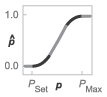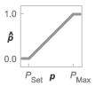 Нормализованное (и насыщенное) превышение контрольного давления охватывает три области. Ниже уставки давления клапана его значение равно постоянному нулю. Выше максимального давления - сумма уставки давления и диапазона регулирования давления - она равна1. В промежутках он изменяется, как линейная функция измерения контрольного давления, pCt1.