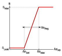 ΔpSet - значение, указанное в параметре блока установки давления клапана.