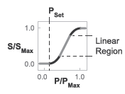 Коэффициент сглаживания между 0 и 1 соответствует непрерывной штучной функции с плавными нелинейными переходами при заданных и максимальных давлениях площади и линейных сегментах в другом месте.