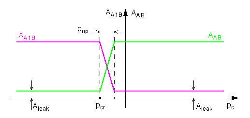 Взаимосвязь между A-B, отверстиями A1-B пути и регулирующим давлением pc показана на следующей иллюстрации.