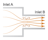 SA и SB - площади поперечного сечения потока в портах A и B.