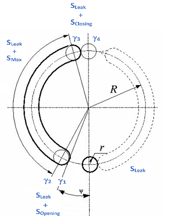 Площадь между γ 2 и γ 3 равна SLeak, а площадь между γ 4 и γ 1 SLeak.Максимальное отверстие SMax = ør2.