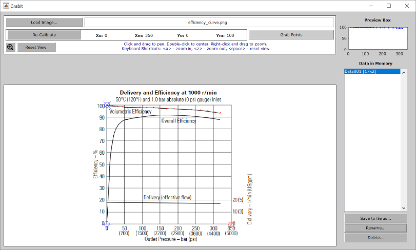 Для моделирования производительности насоса в соответствии с определенным насосом можно предоставить данные о производительности и давлении для интерполяции во время моделирования с помощью опции параметризации табличных данных. Если ввод данных из таблицы данных вручную не требуется, можно использовать функцию обмена файлами MATLAB. grabit для извлечения точек данных из изображения печати.