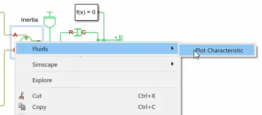 Щелкните правой кнопкой мыши блок с меткой Двигатель (Motor) и выберите Жидкости (Fluids) > Печать характеристики (Plot Characteristic). Откроется тестовый жгут для двигателя.