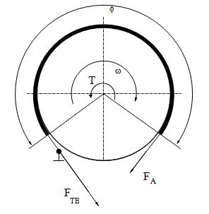 FTB - сила, действующая на напряжённую ветвь полосы.