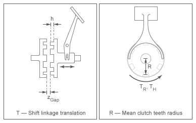 где h0 - минимальное перекрытие зубьев для зацепления муфты. Отрегулируйте этот параметр, чтобы минимизировать нестабильность зацепления, то есть тенденцию муфты быстро переключаться между включенным и выключенным состояниями