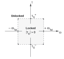Схема показывает условия, при которых муфта заблокирована и разблокирована. Муфта обычно блокируется, если крутящий момент, который она передает, находится между ее пределами статического крутящего момента трения и величина скорости скольжения меньше, чем ее допуск скорости. В противном случае муфта разблокировалась.