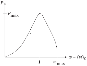 Мощность двигателя отличная от нуля, когда скорость ограничена рабочим диапазоном, Ωmin ≤ Ω ≤ Ωmax. Абсолютная максимальная мощность Pmax двигателя определяет Ω0 таким образом, что Pmax = g (Λ 0). Определите w ≡ Ω/Ω0 и g (Λ) ≡ Pmax· p (w). Тогда p (1) = 1 и dp (1 )/dw = 0. Функция крутящего момента: