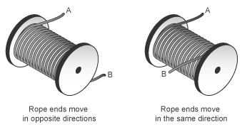 Если концы каната находятся в противоположных направлениях, они перемещаются в одном направлении.